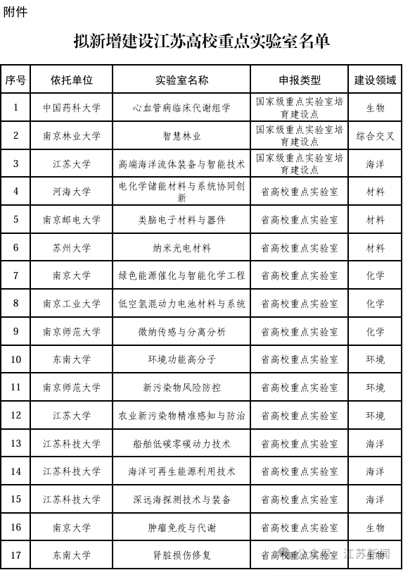9月18日,江蘇省教育廳就江蘇高校重點實驗室擬新增建設名單發(fā)布公示。