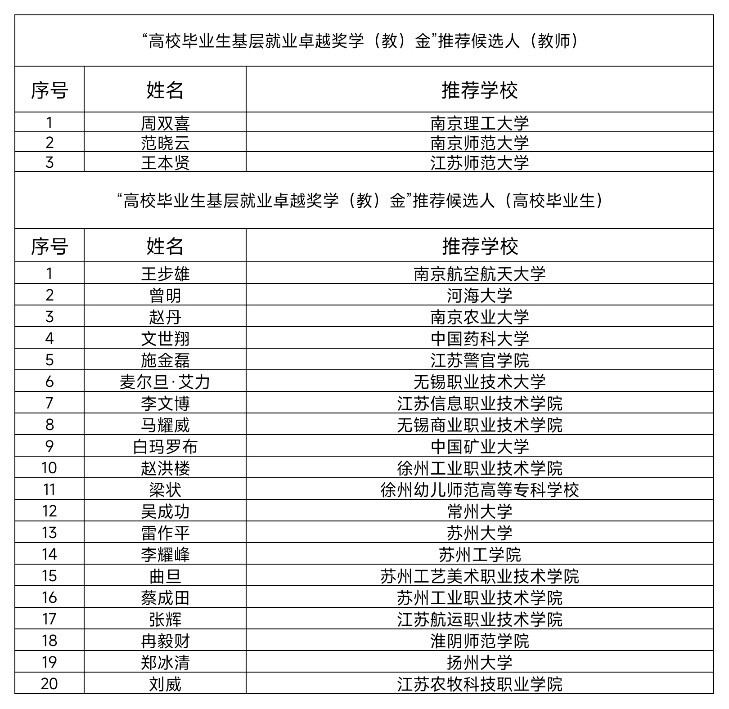 江蘇這些人,擬獲高校畢業(yè)生基層就業(yè)卓越獎(jiǎng)學(xué)(教)金