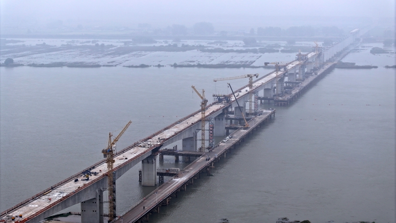寧淮城際鐵路跨淮河入江水道段連續(xù)梁全部合龍