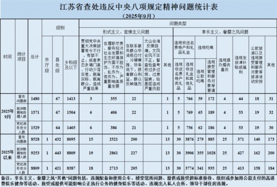9月江蘇查處違反中央八項規(guī)定精神問題1480起