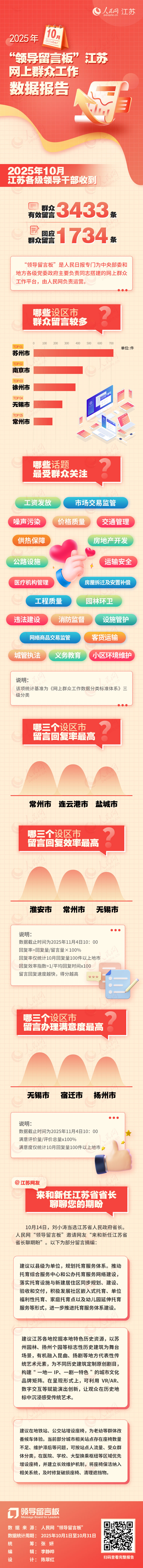 “領(lǐng)導(dǎo)留言板”數(shù)據(jù)報(bào)告丨10月江蘇收到有效留言3433件 網(wǎng)友向新任省長(zhǎng)聊期盼