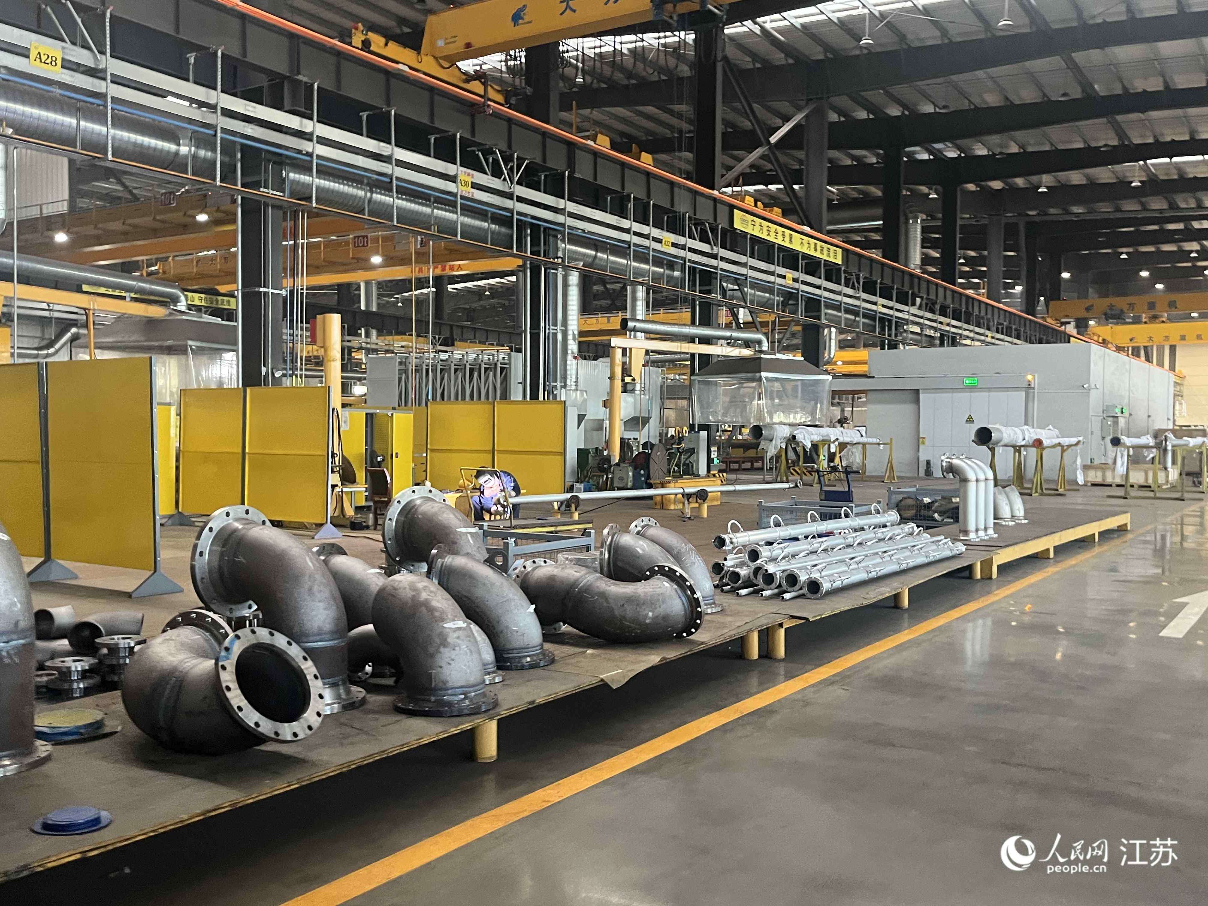 連云港遠(yuǎn)洋流體裝卸設(shè)備有限公司智能裝備制造基地。人民網(wǎng) 任曉燃攝