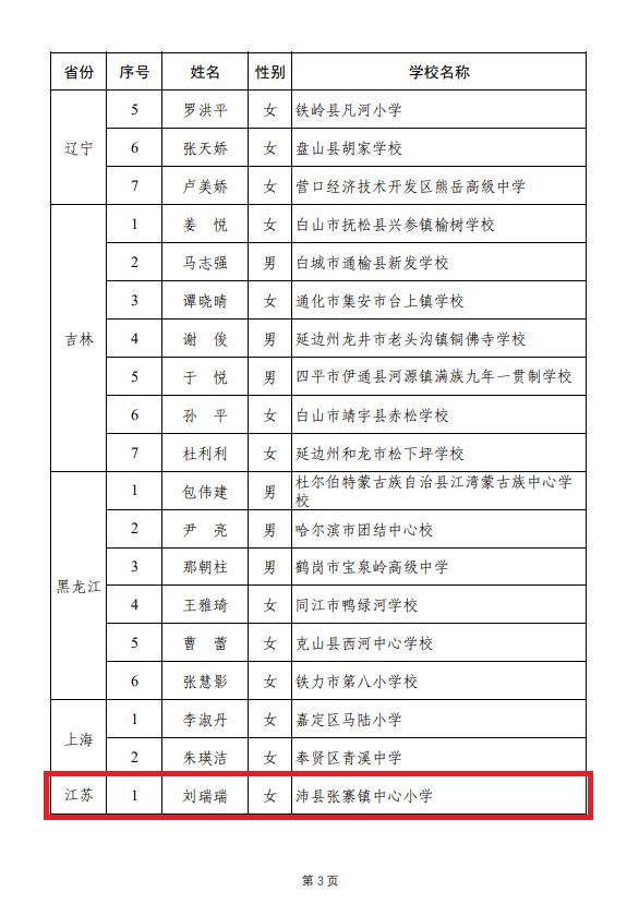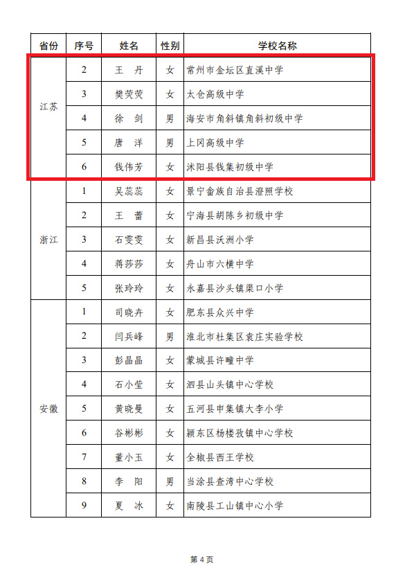 日前,教育部公布了2024年鄉(xiāng)村優(yōu)秀青年教師培養(yǎng)支持計劃人選。根據(jù)該通知,經(jīng)省級教育行政部門推薦、資格審查、公示等環(huán)節(jié)后,最終確定2024年鄉(xiāng)村優(yōu)秀青年教師培養(yǎng)支持計劃入選教師300人。記者注意到,其中江蘇有6名中小學青年教師入選。