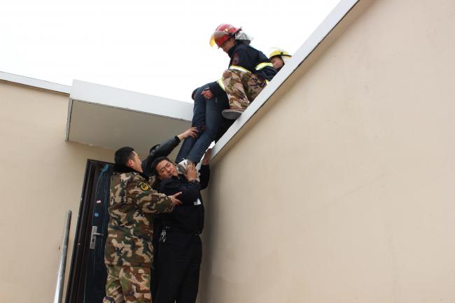 解救跳樓的小唐,并用肩膀接下凍僵的小唐