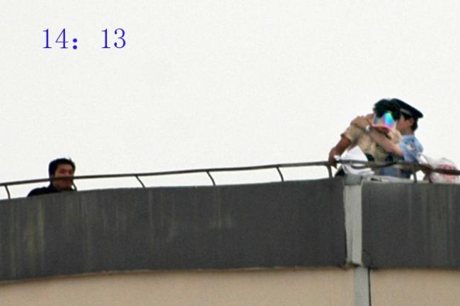 現(xiàn)場(chǎng)緊張的氣氛猶如黎明前的戰(zhàn)場(chǎng)!有著多年從警經(jīng)驗(yàn)的老民警緊張得大腦一片空白:“我們感到膽戰(zhàn)心驚,無從下手!币荒樈箲]的消防戰(zhàn)士也說:“一旦真從9樓跳下,就是鋪設(shè)了專用救生氣墊,也無法保證3個(gè)人的生命安全!